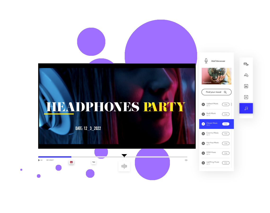 Why pay when you can add music to a video for free? You can edit a video in so many ways using our free video editor. Add text, animation, characters, music, and more to create unique videos every time.