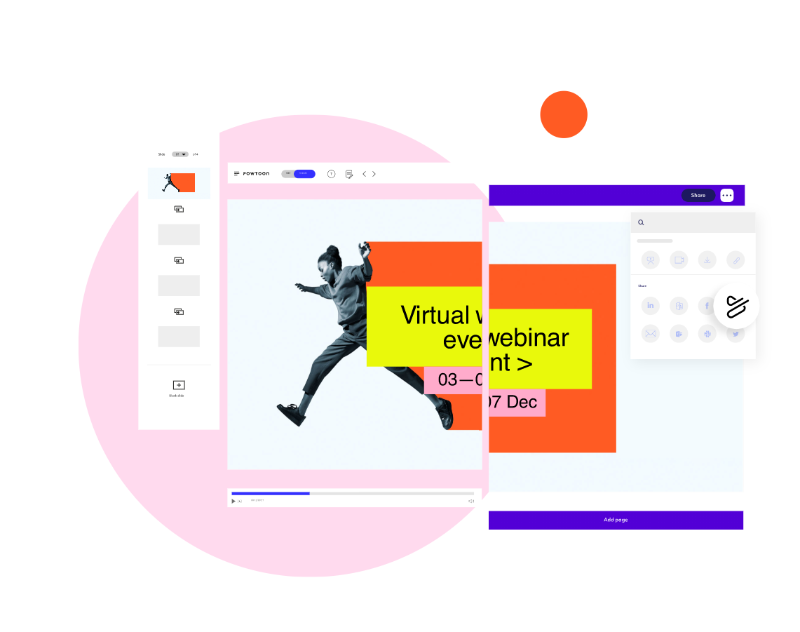 Powtoon is a free video maker where you can import your favorite Canva designs to a video online anytime, anywhere. Enhance your Canva designs with free stock images and videos, drag and drop animation, characters, and music soundtracks – or upload your own – to create your own unique videos. Share directly to YouTube, Facebook, LinkedIn, Hubspot & more! Watch your video come to life in seconds.