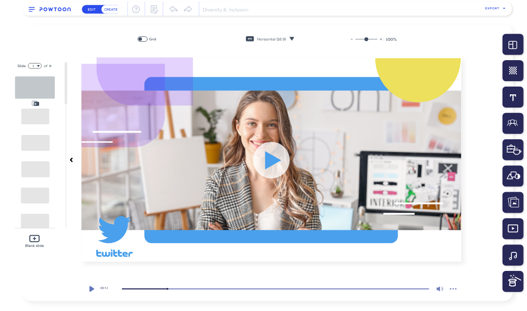Engage and entertain your audience on Twitter with snackable video content that will ignite brand obsession. Increase traffic and drive conversions with the help of Powtoon’s Twitter videos.